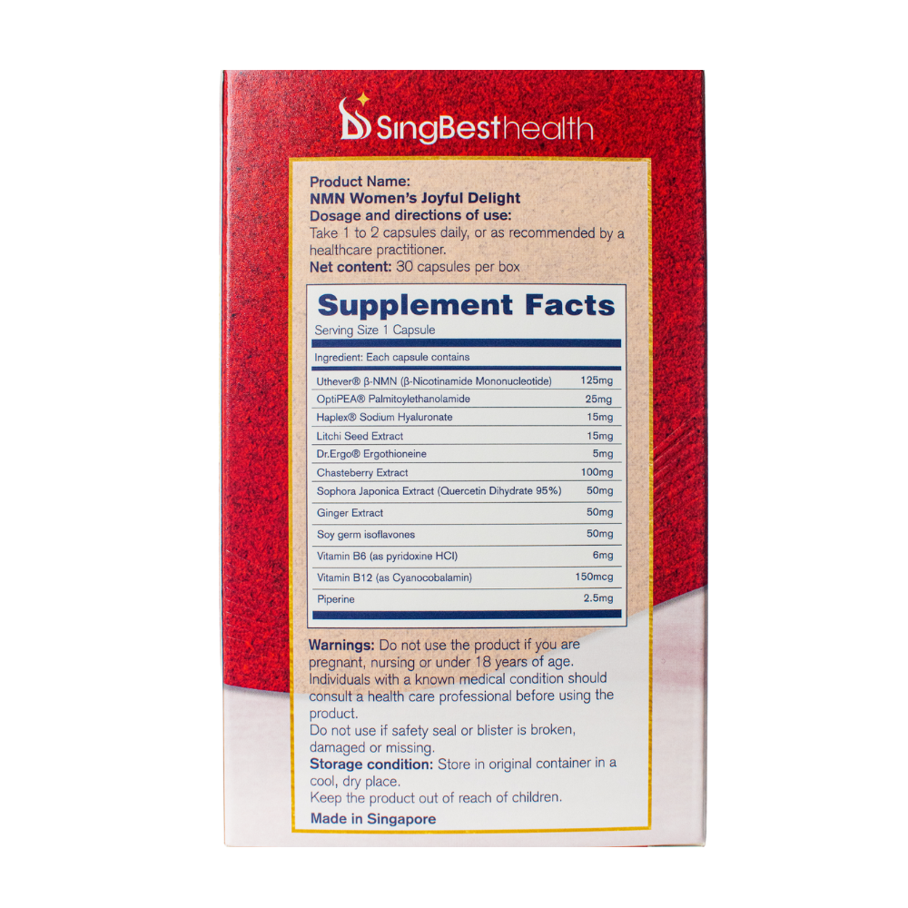 Embrace your radiance and feel amazing, every single day. NMN Women’s Joyful Delight is a premium supplement designed to support your total well-being. Crafted for the modern woman, it helps boost your energy, balance your body, and ignite a joyful vitality from within. It’s time to take control of your wellness and shine!